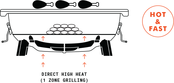 Our proprietary venting shape for exceptional Two-Zone grilling. Enjoy superior direct high heat cooking and indirect low & slow cooking!