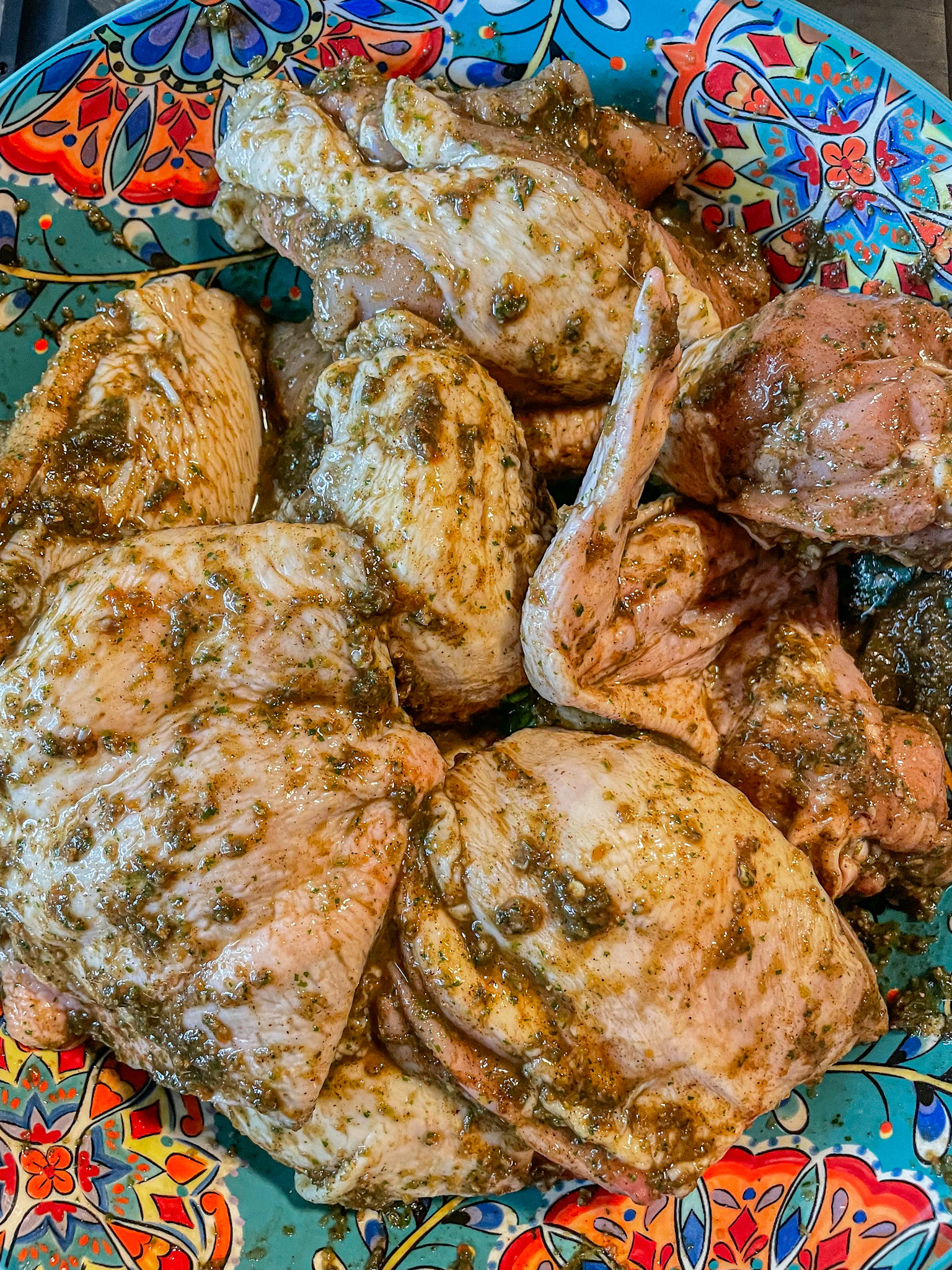 This same marinade can be used on any cut of chicken, just reduce the marinating time when using boneless and skinless chicken. It can also be used on pork and seafood. The extra marinade can be stored in a glass container for up to a week in the refrigerator.