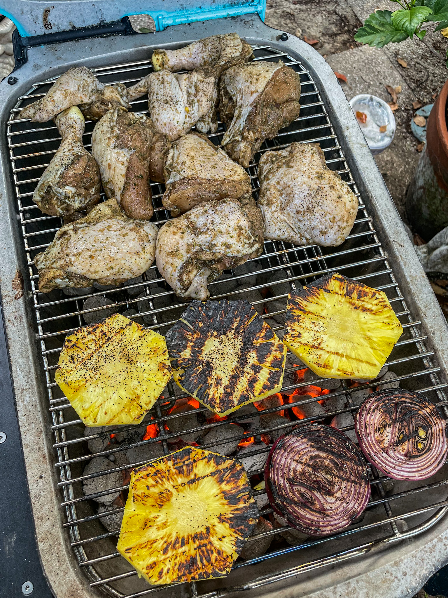 Remove the onion and pineapple from the grill, allowing it to cool.