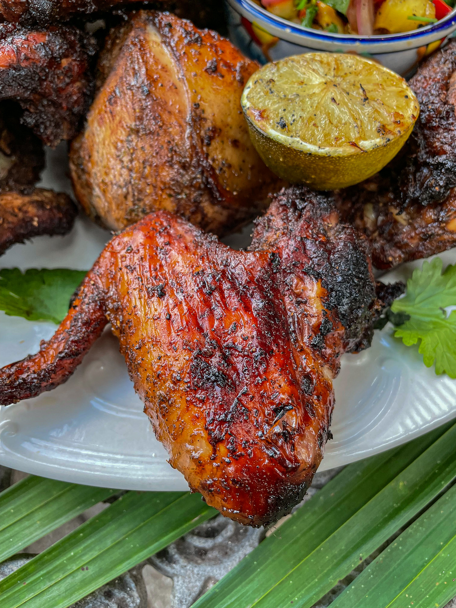 Jamaican Jerk Chicken with Grilled Pineapple Salsa is a taste of the tropics that will instantly put you in an island state of mind. Combining aromatic warm spices with herbaceous notes and fruity spice, it is a full sensory experience.