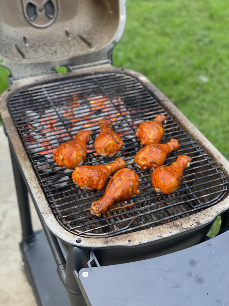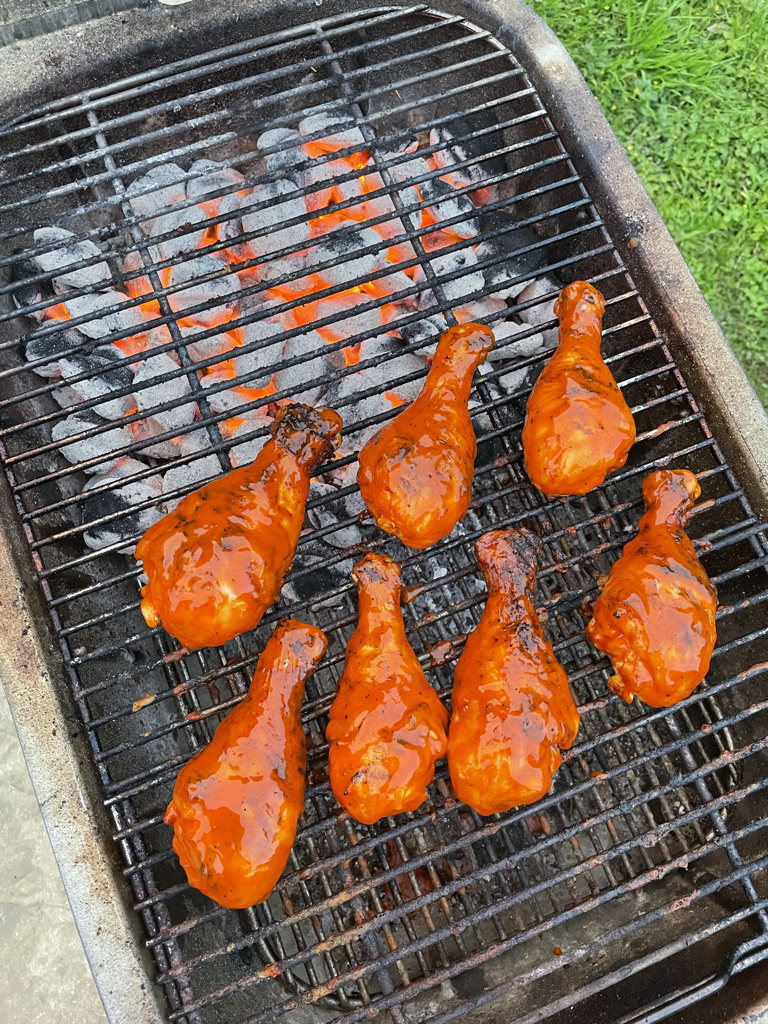 Turn the drumsticks once more, and coat with a final layer of the buffalo sauce. Close the lid and allow them to finish cooking. The drumsticks are ready when the reach an internal temperature of 165f.
