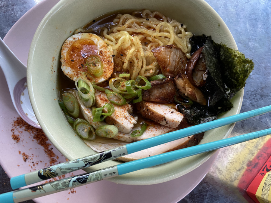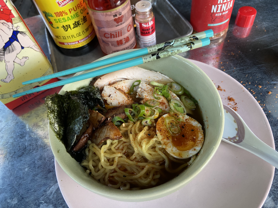 Serve the ramen topped with additional Rib Ninja seasoning, and a drizzle of chili oil and toasted sesame oil