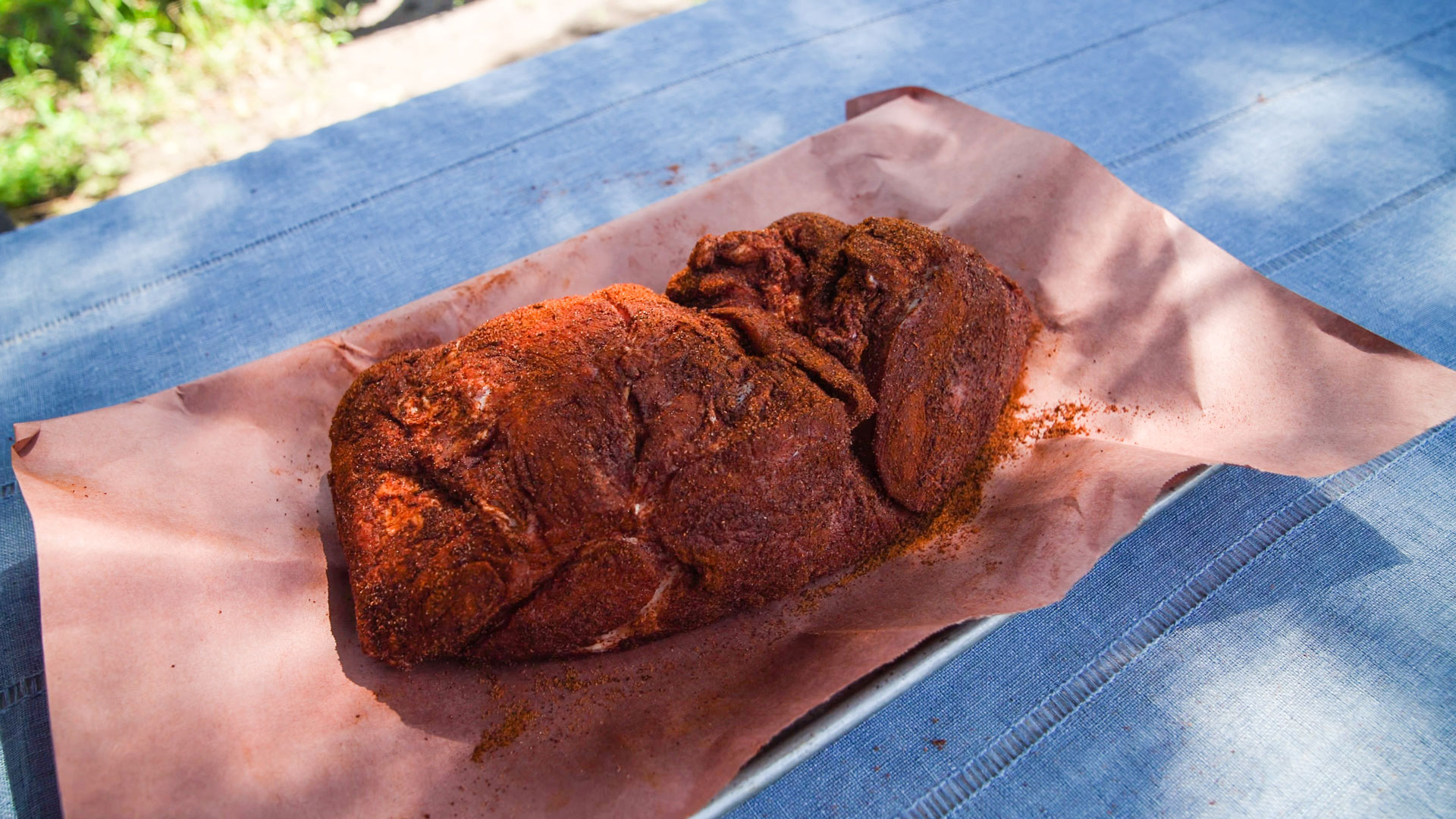 About 1 hour before smoking, remove the pork from the refrigerator. Prepare a charcoal grill for two-zone cooking and build a medium-high fire.