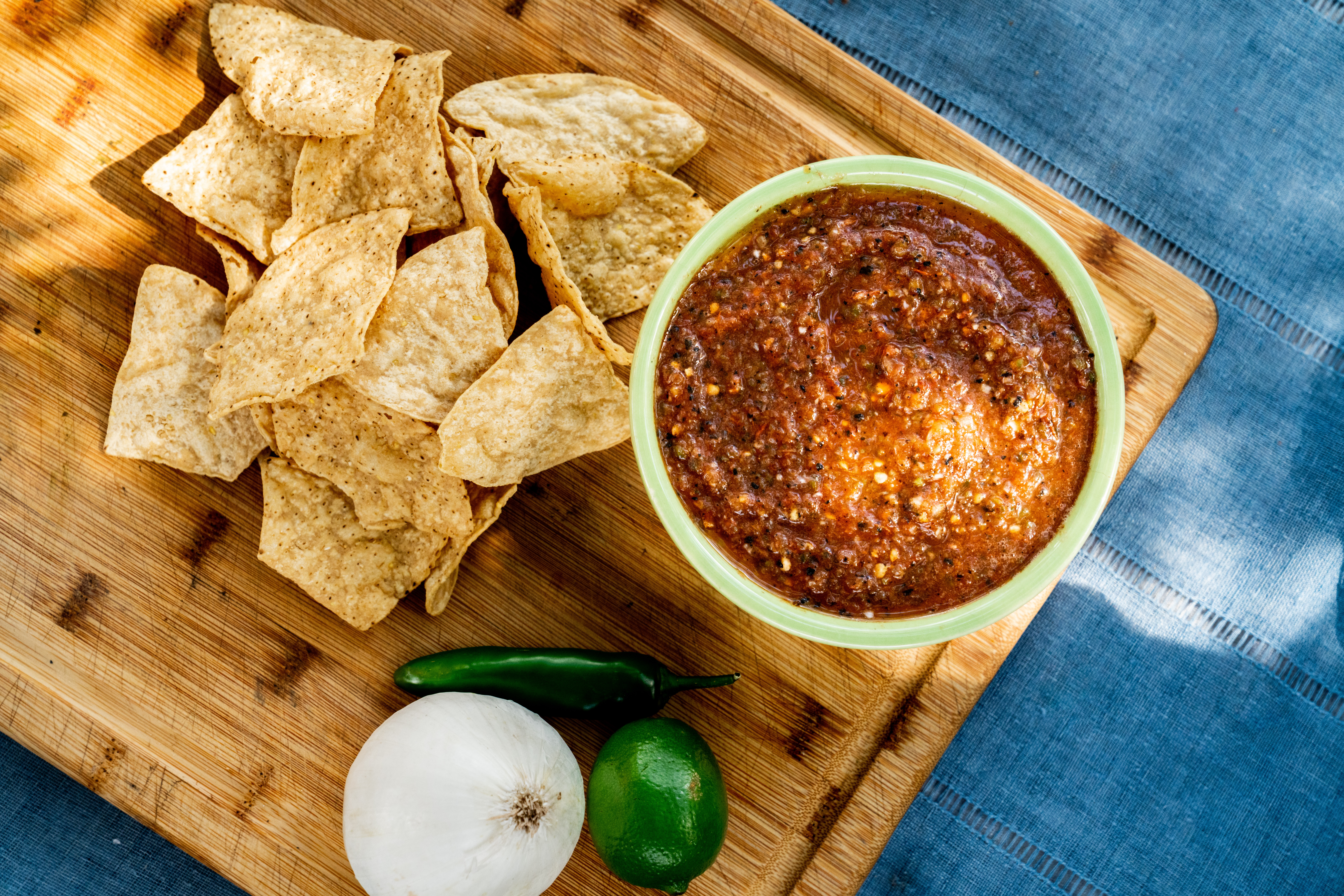 Add all the ingredients to a food processor (for a chunkier salsa) or a blender (for a smoother salsa) and puree to desired texture. Add salt and lime to taste, then refrigerate for up to one week.