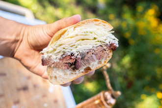 Brisket Sandwiches with Apple-Cabbage Slaw & Creamy Horseradish Dressing