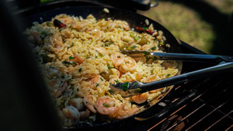 Smoky Shrimp with Lemony Orzo, Green Olives & Feta
